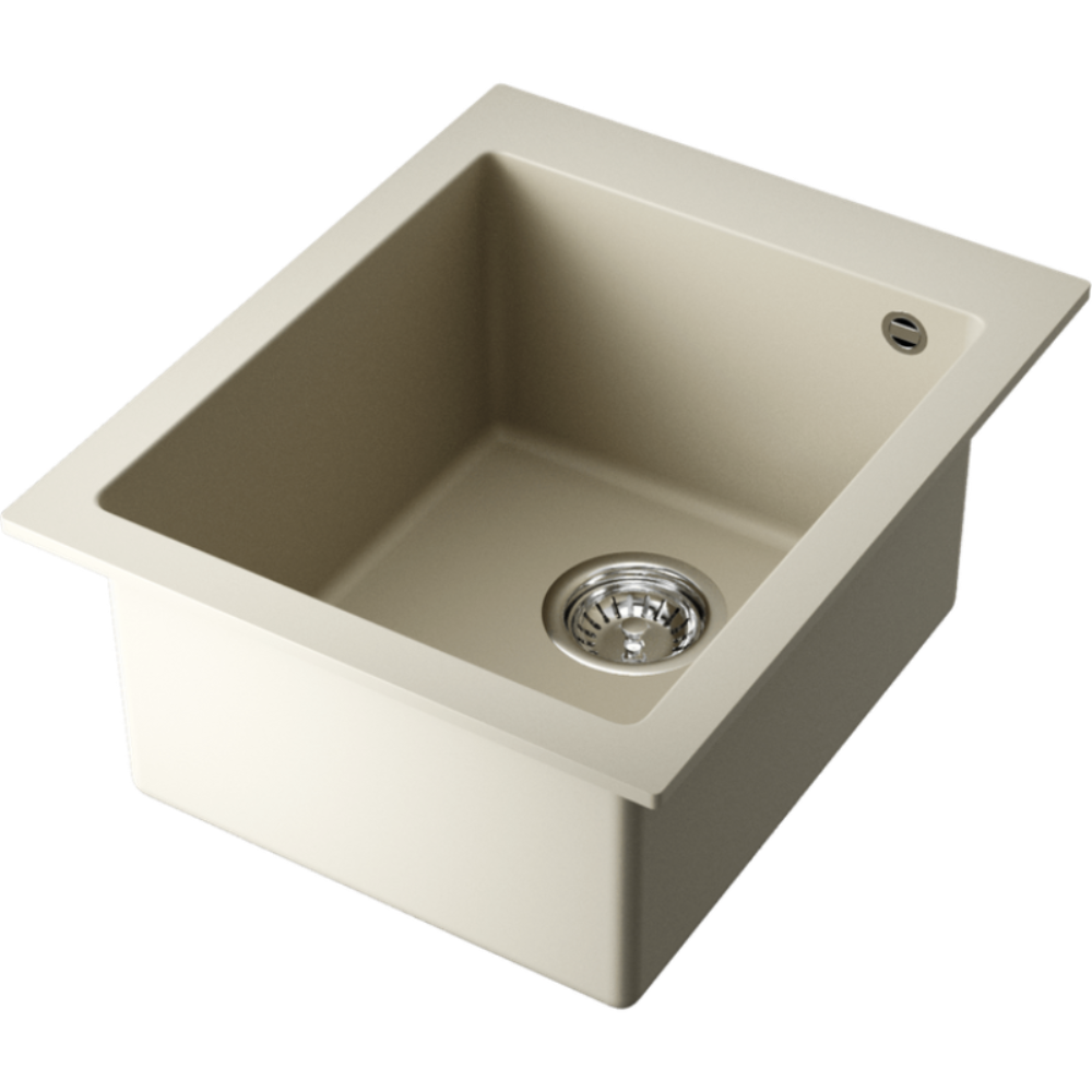 Мойка кухонная Omoikiri из коллекции Bosen 41-BE имеет размеры 410х500 мм., изготовлена из искусственного гранита. Форма — прямоугольная, одна чаша без отверстия для смесителя. Сифон в комплекте. Ширина чаши 34. Подстольный монтаж.