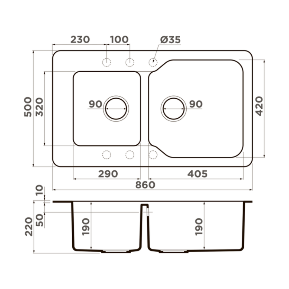 Мойка кухонная Omoikiri из коллекции Maru 86-2-EV имеет размеры 860х500 мм., изготовлена из искусственного гранита. Форма — прямоугольная, одна чаша без отверстия для смесителя. Сифон в комплекте. Ширина чаши 40,5. Врезной монтаж. Имеется дополнительная чаша.