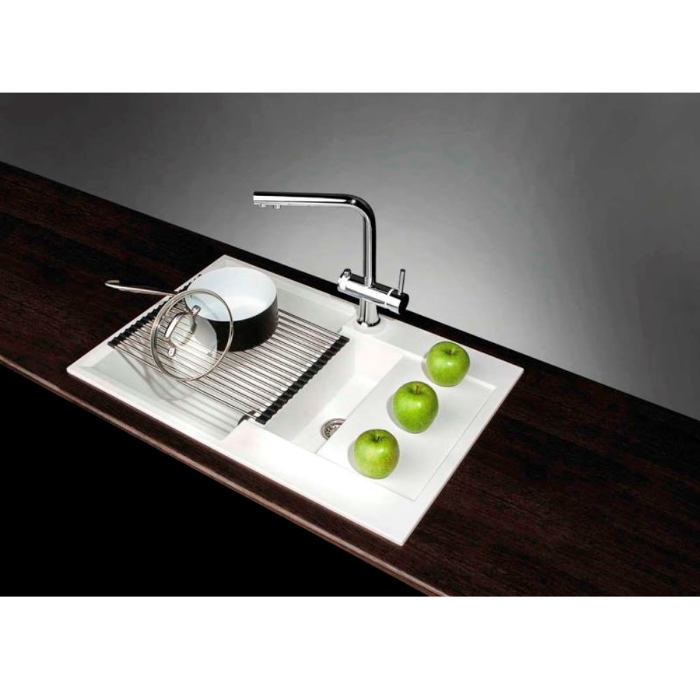 Мойка кухонная Omoikiri из коллекции Sakaime 78-2-WH имеет размеры 780х500 мм., изготовлена из искусственного гранита. Форма — прямоугольная, одна чаша без отверстия для смесителя. Сифон в комплекте. Ширина чаши 36. Врезной монтаж. Имеется дополнительная чаша и крыло.