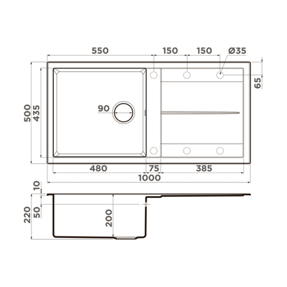 Мойка кухонная Omoikiri из коллекции Sumi 100-SA имеет размеры 1000х500 мм., изготовлена из искусственного гранита. Форма — прямоугольная, одна чаша без отверстия для смесителя. Сифон в комплекте. Ширина чаши 48. Врезной монтаж. Имеется крыло.