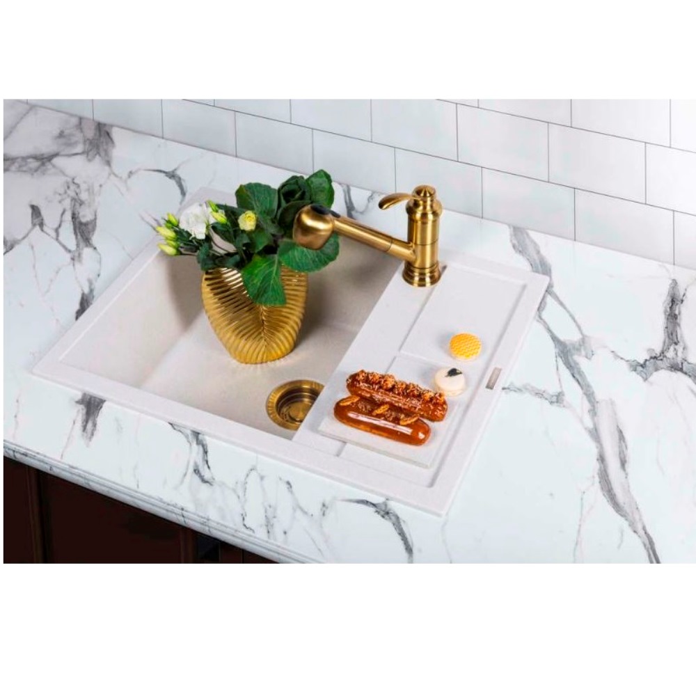 Мойка кухонная Omoikiri из коллекции Sumi 65-WH имеет размеры 650х500 мм., изготовлена из искусственного гранита. Форма — прямоугольная, одна чаша без отверстия для смесителя. Сифон в комплекте. Ширина чаши 38. Врезной монтаж. Имеется крыло.