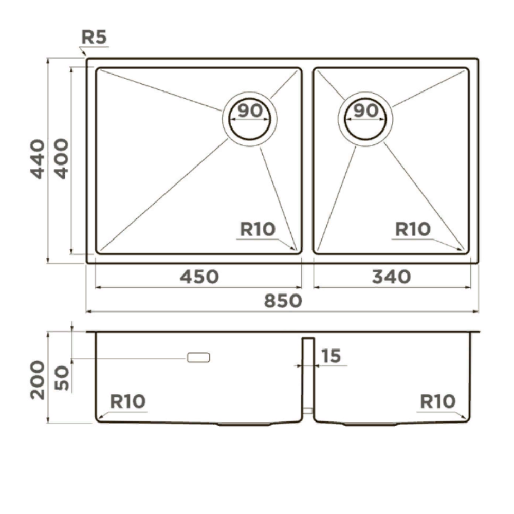 Мойка кухонная Omoikiri из коллекции Taki 85-2-LB-U/IF-IN Side имеет размеры 850х440 мм., изготовлена из нержавеющей стали. Форма — прямоугольная, одна чаша без отверстия для смесителя. Сифон в комплекте. Ширина чаши 45. Подстольный и врезной монтаж, монтаж вровень. Имеется дополнительная чаша.