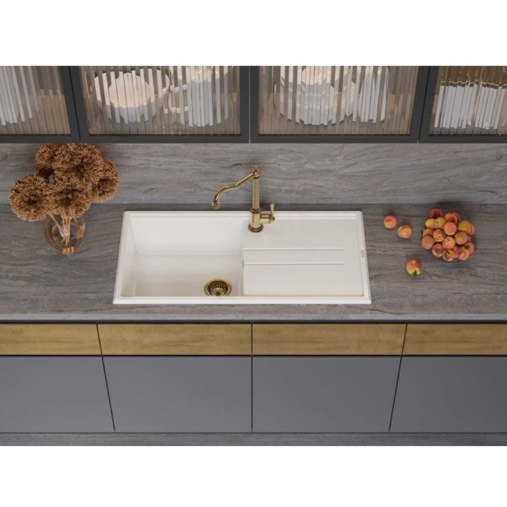 Мойка кухонная Omoikiri из коллекции Tedori 100-BL имеет размеры 1000х510 мм., изготовлена из искусственного гранита. Форма — прямоугольная, одна чаша без отверстия для смесителя. Сифон в комплекте. Ширина чаши 47,8. Врезной монтаж. Имеется крыло.