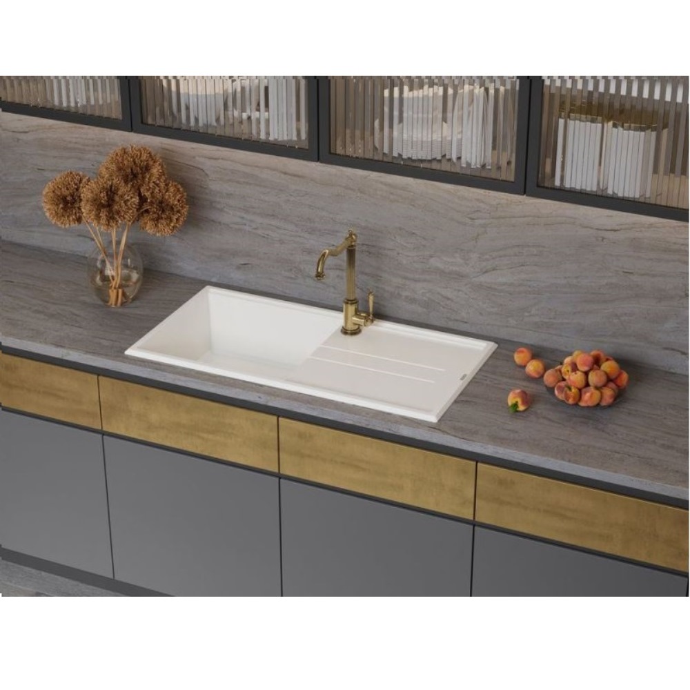 Мойка кухонная Omoikiri из коллекции Tedori 100-GR имеет размеры 1000х510 мм., изготовлена из искусственного гранита. Форма — прямоугольная, одна чаша без отверстия для смесителя. Сифон в комплекте. Ширина чаши 47,8. Врезной монтаж. Имеется крыло.