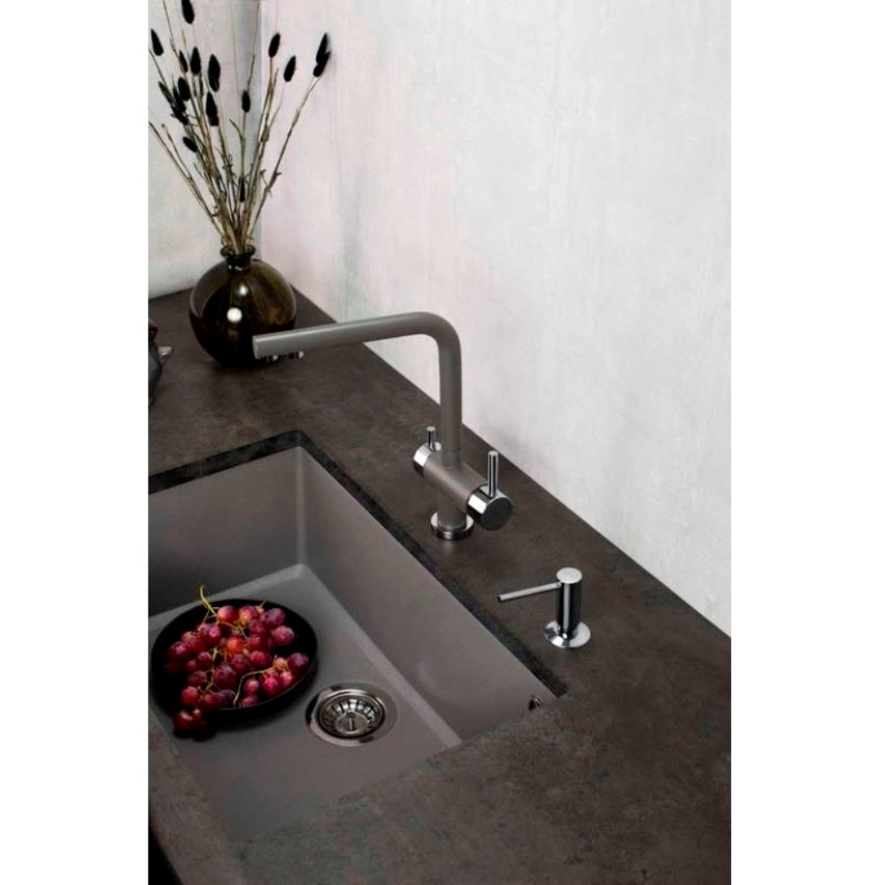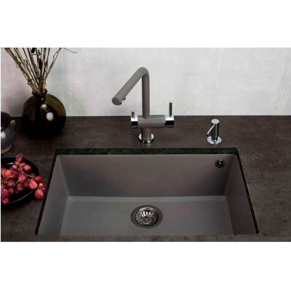 Мойка кухонная Omoikiri из коллекции Tedori 66-U-PL имеет размеры 660х420 мм., изготовлена из искусственного гранита. Форма — прямоугольная, одна чаша без отверстия для смесителя. Сифон в комплекте. Ширина чаши 62. Подстольный монтаж.