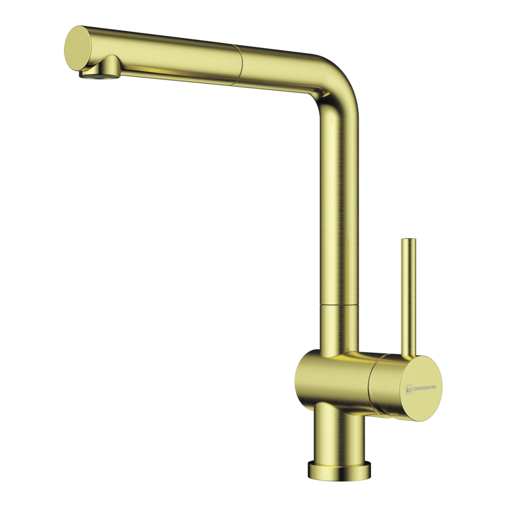 Смеситель для кухни Omoikiri Akashi оснащен рычажным управлением для регулировки температуры и напора воды. Горизонтальный монтаж на 1 отверстие. Вытяжной излив 202 мм.