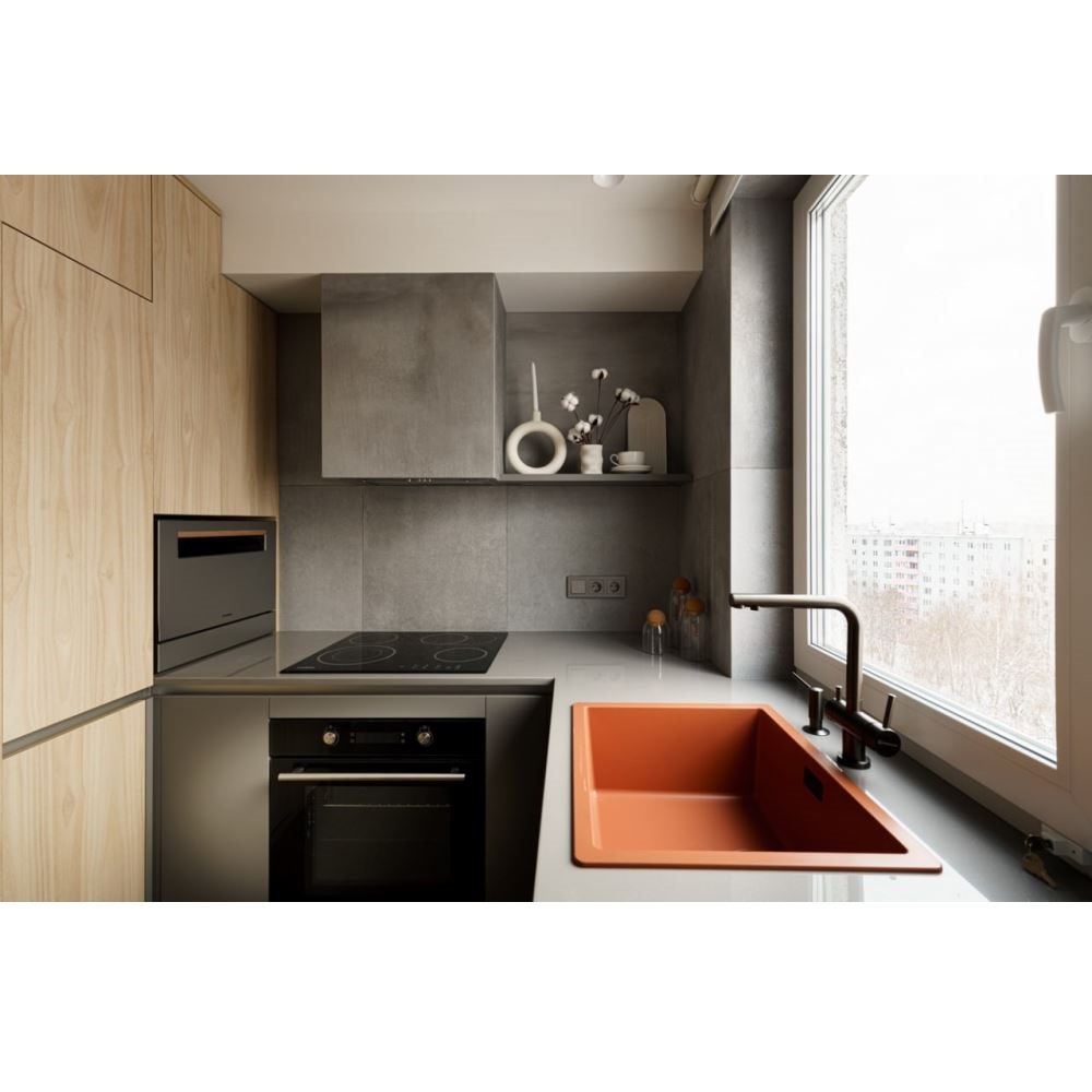 Смеситель для кухни Omoikiri Nagano с подключением фильтра оснащен рычажным управлением для регулировки температуры и напора воды. Горизонтальный монтаж на 1 отверстие. Поворотный излив 176 мм.