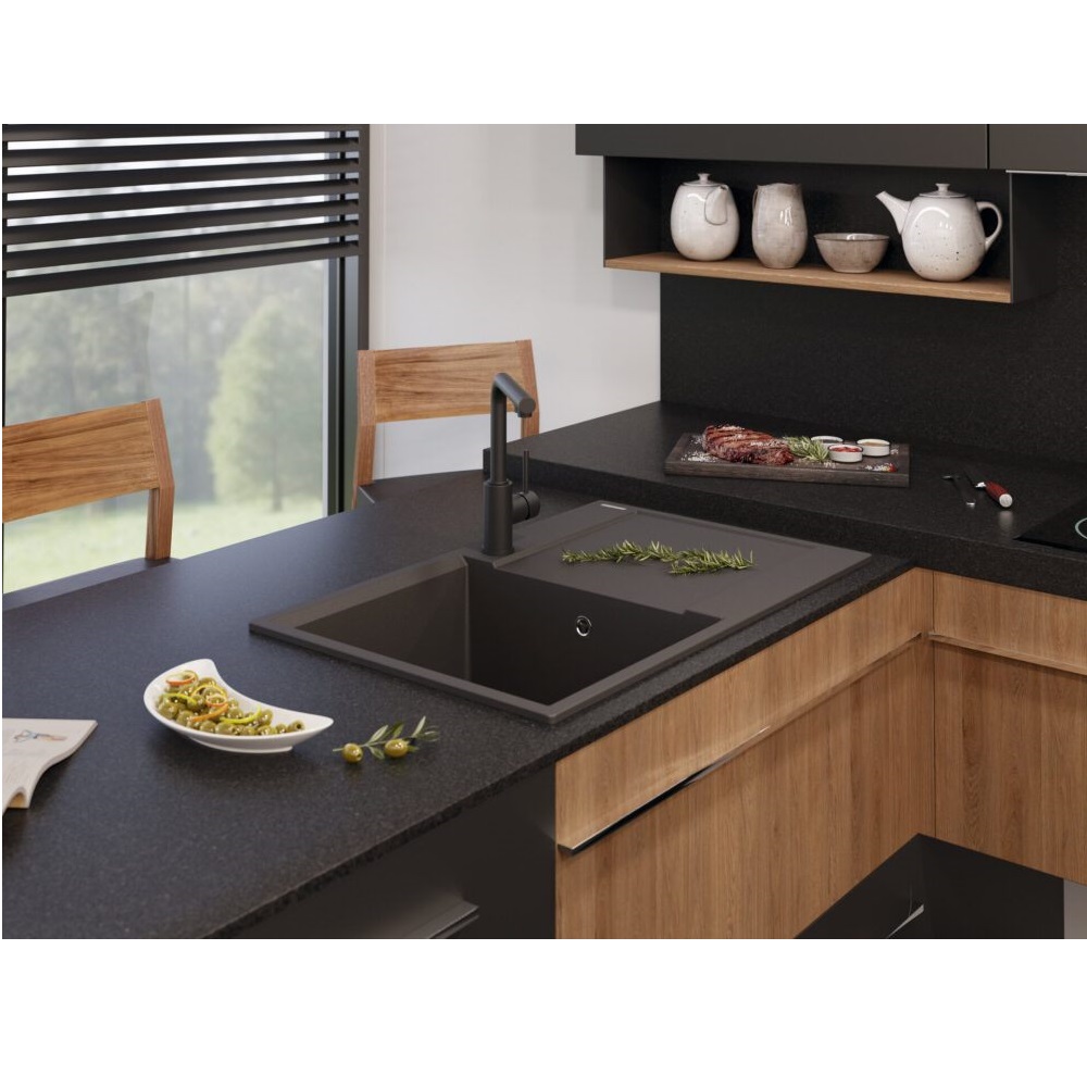 Смеситель для кухни Omoikiri Nakagawa 2 Plus с подключением фильтра оснащен рычажным управлением для регулировки температуры и напора воды. Горизонтальный монтаж на 1 отверстие. Поворотный излив 210 мм.