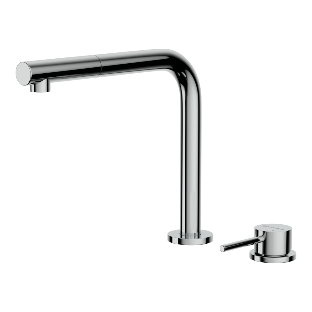 Смеситель для кухни Omoikiri Nara-S оснащен рычажным управлением для регулировки температуры и напора воды. Горизонтальный монтаж на 2 отверстия. Вытяжной излив 220 мм.