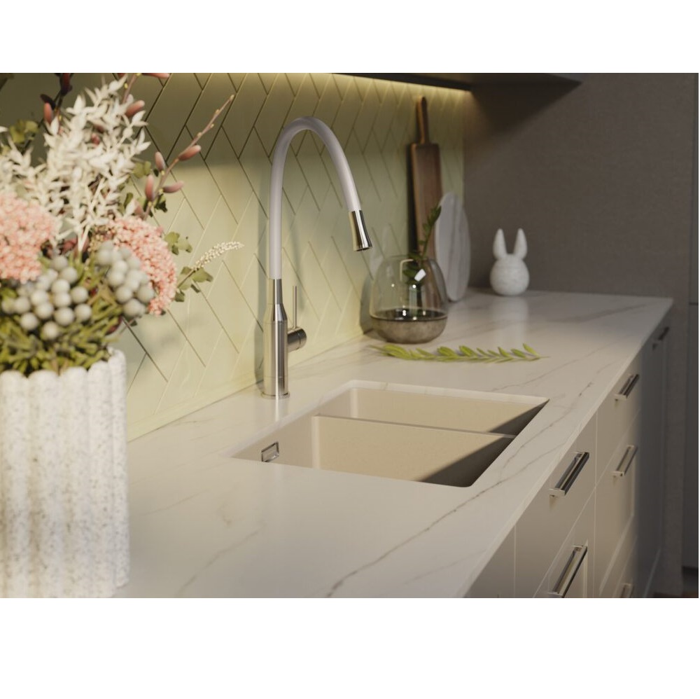 Смеситель для кухни Omoikiri Yatomi оснащен рычажным управлением для регулировки температуры и напора воды. Горизонтальный монтаж на 1 отверстие. Гибкий излив 224 мм.